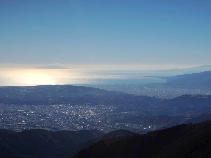 南側。秦野市と小田原市の向こうは相模湾。三原山(伊豆大島)と真鶴岬もよく見えた。