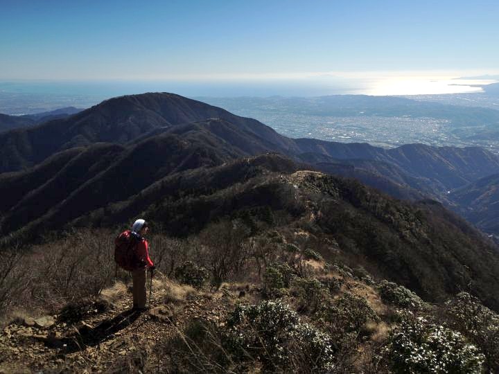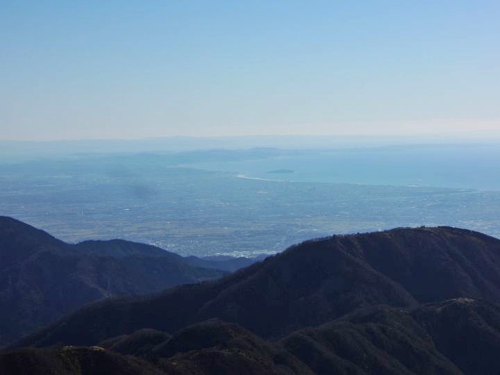 大山の右奥には江ノ島と三浦半島、さらに房総半島も幽かに見えていた。