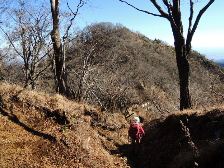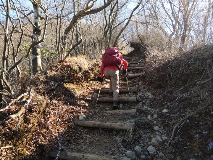行者ヶ岳の手前の鞍部まで急坂を下る。