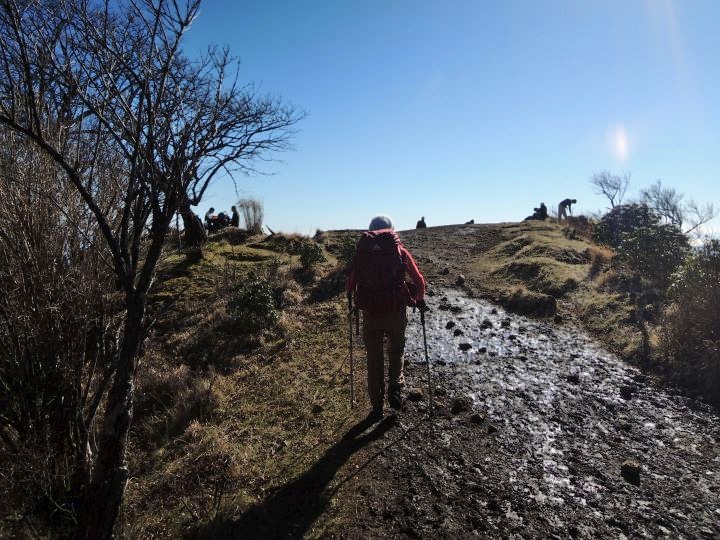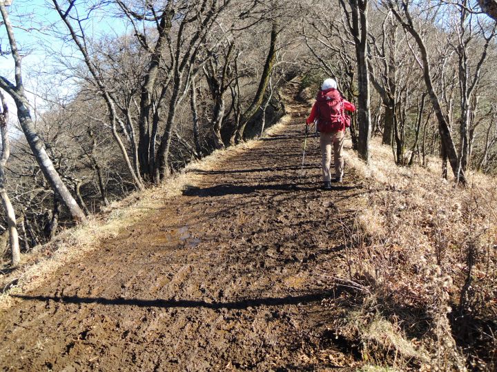 泥濘の広い道を進んで、広場のような小ピークに出た。