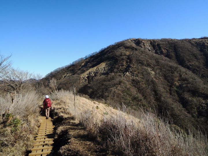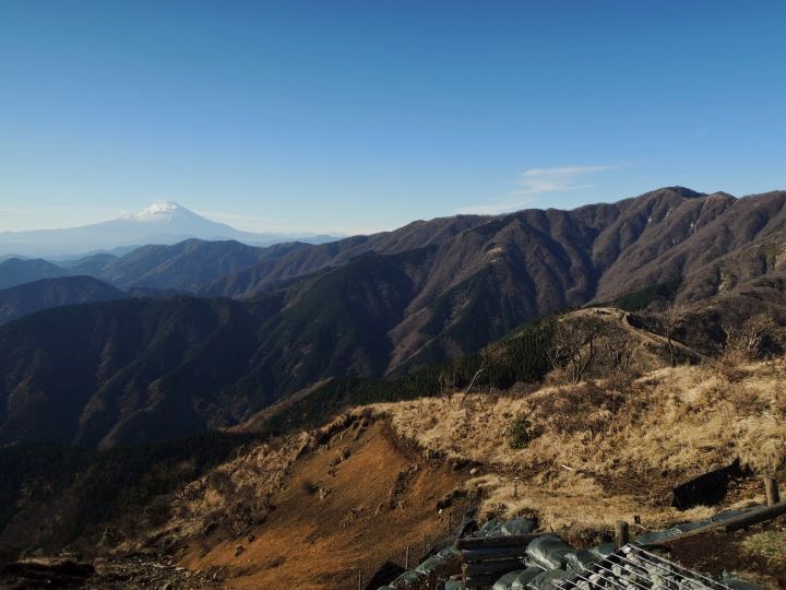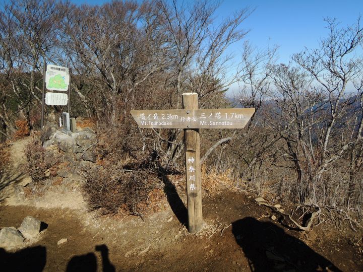 背後の北側には丹沢三峰。三つ並んだ左が円山木ノ頭(中央峰)、右が本間ノ頭(東峰)で真ん中は無名の峰。太礼ノ頭(西峰)は頭が少し見えるだけ。