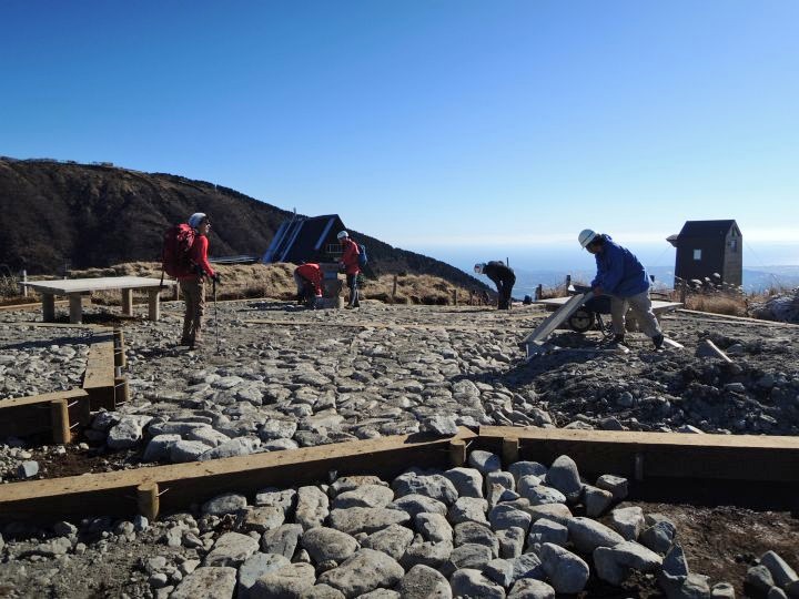 12:35 烏尾山に到着。ここも泥濘が酷くなるところだが、石を敷く工事が進んでいた。