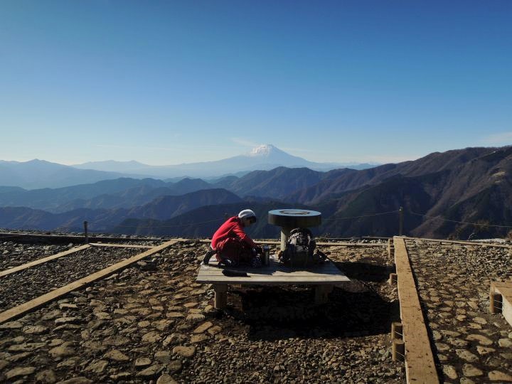 行者ヶ岳から見えた富士山と塔ノ岳。