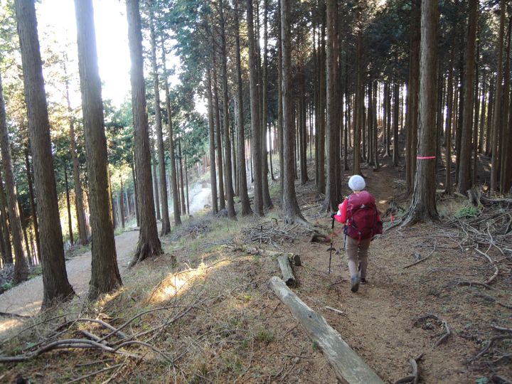 最初はゆるやかな樹林帯の道が続いた。歩き始めてすぐにヘッドライトのいらない明るさになった。