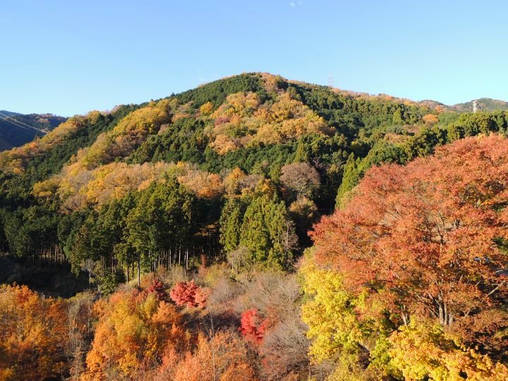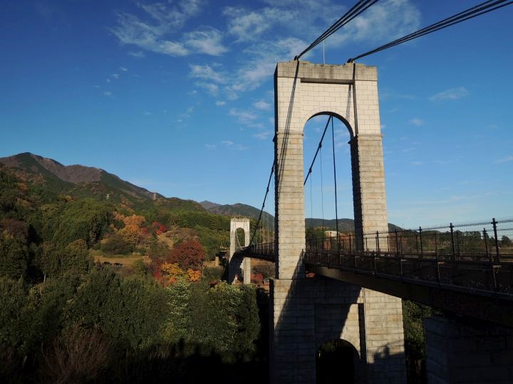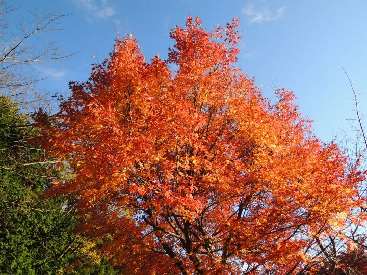 吊り橋手前のカエデが真っ赤に紅葉していた。