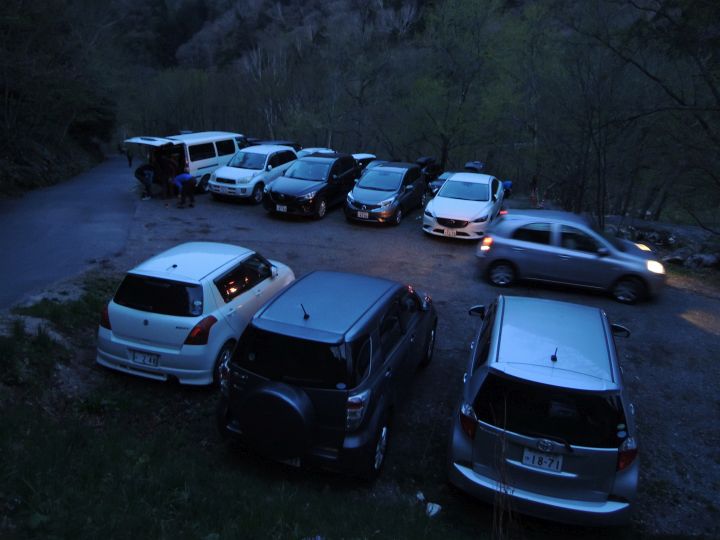 4:25 第2Pに到着。最後の1台だったようで、後続車は第3Pへ向かうか無理やり路駐していた。