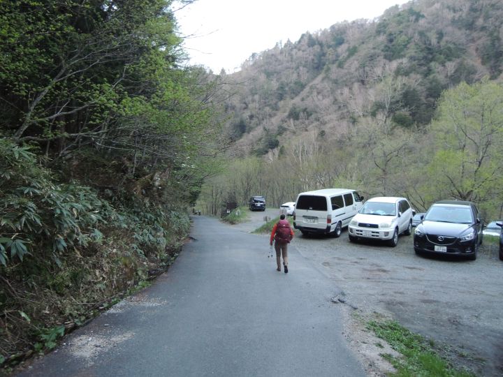 4:50 駐車場を出発。中房登山口までは林道を歩く。