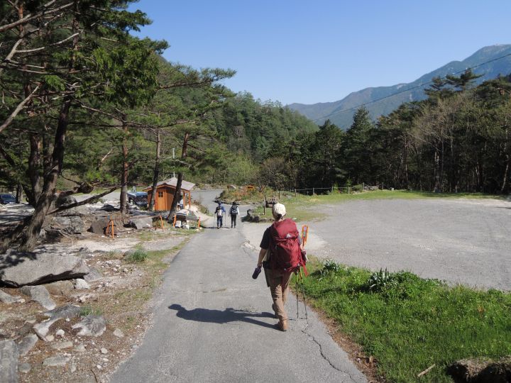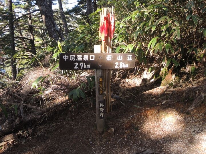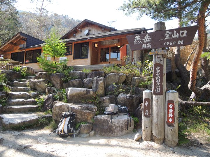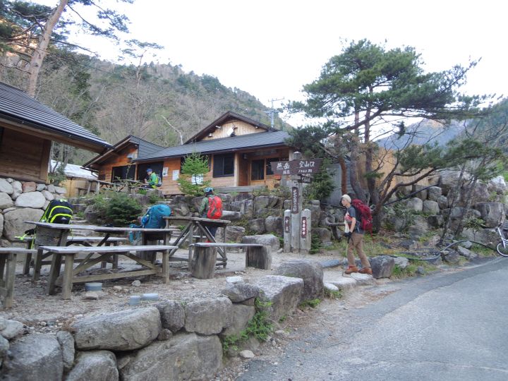 14:55 中房登山口に到着。登山口の中房温泉で疲れを癒やしていく登山者もいるようだった。