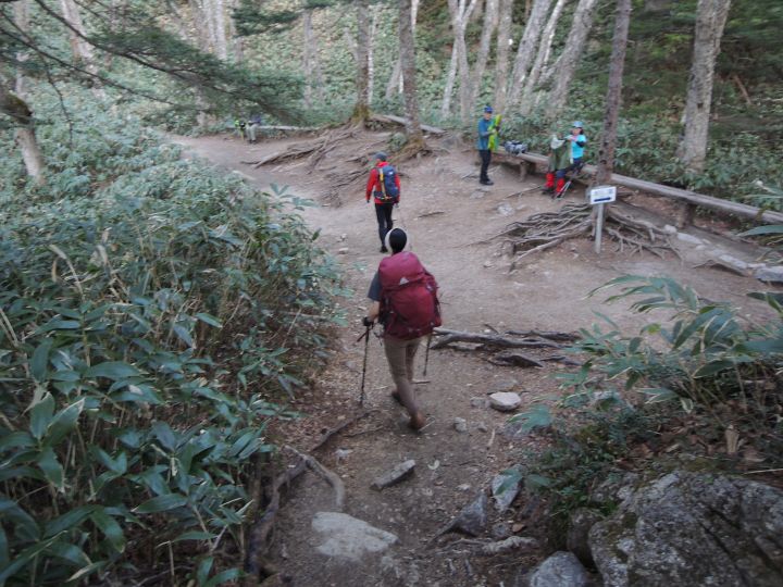 5:45 第一ベンチを通過。早出した登山者の姿がちらほらあったが、思ったよりも少ないと感じた。