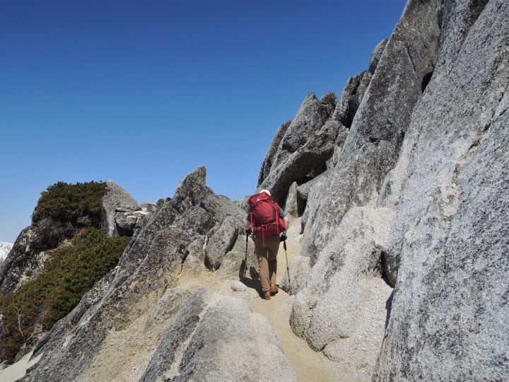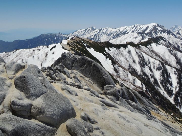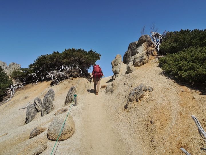 砂礫の道を進む。稜線の雰囲気が、同じ花崗岩でできた鳳凰三山にとてもよく似ていた。