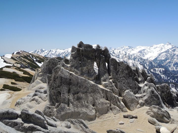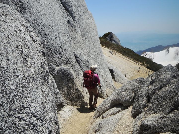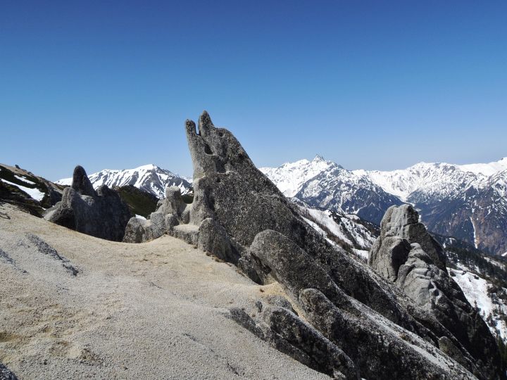 燕岳の花崗岩は粒子が粗くてザラメのようだった。登山靴を傷つけないよう足運びに注意した。
