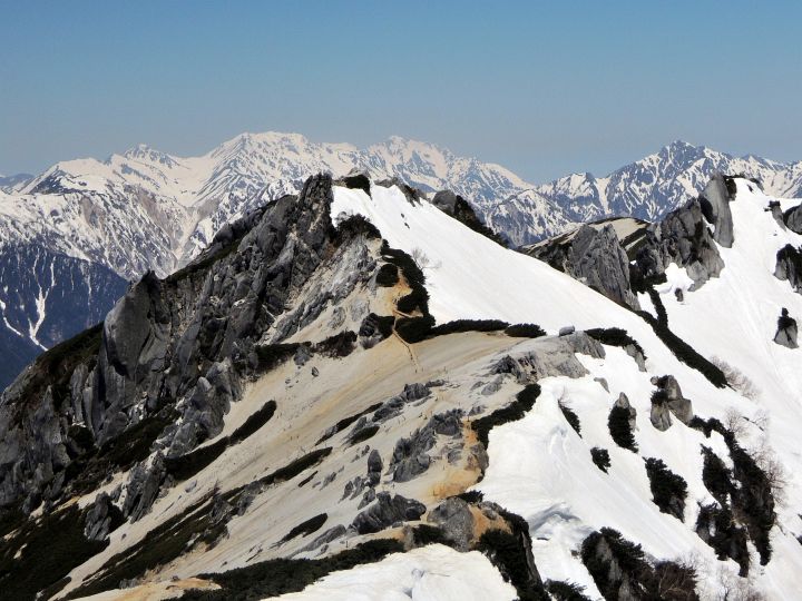 飛騨山脈を北アルプス、赤石山脈を南アルプス、木曽山脈を中央アルプスとそれぞれ形容することに、ひっかかりを感じることもあるのだが、雪山の絶景を眺めているとアルプスと呼びたくなるのも分かる気がした。
