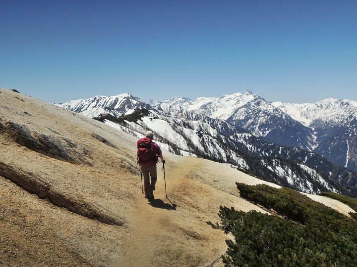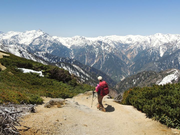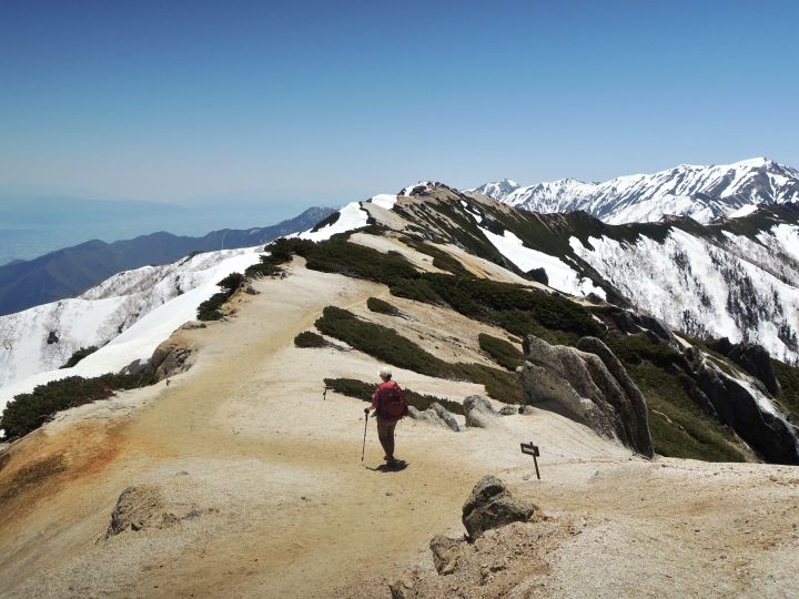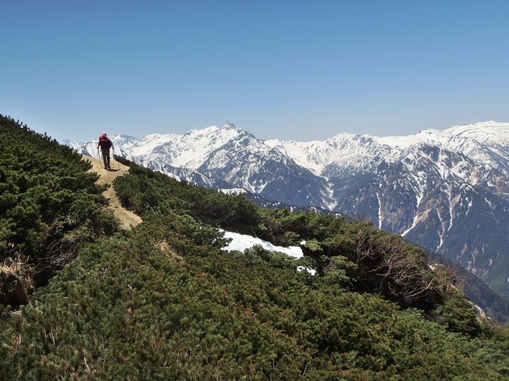 稜線のアップダウンはゆるやかで、これぞ北アルプスといった大展望を楽しみながら、悠々と歩くことができる。