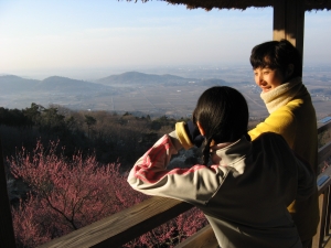 朝陽に照らされた梅林を堪能した。