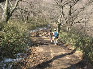 御幸ヶ原へ向かう道は、雪が融けてドロドロ。氷結した雪も残っていたので、慎重に歩いた。