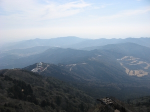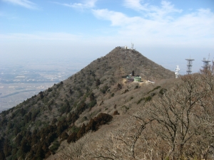 女体山の本殿下に到着。階段下の見晴らしからは北東方面が一望できる。