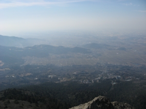南東方面にはロープウェイ乗り場が見えたが、少し霞んでいた。