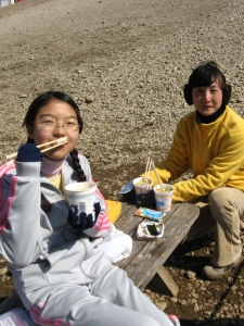 風が出てきたので、温かいカップ麺がうまかった。