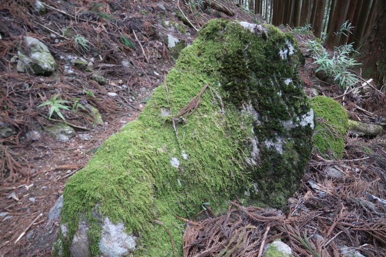 苔に覆われた岩。ゆっくりと苔を見ながら歩いた。