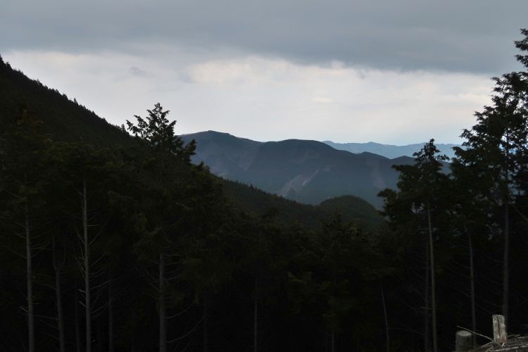 西側の眺め。長沢背稜の上にどんよりとした層雲が広がっていた。