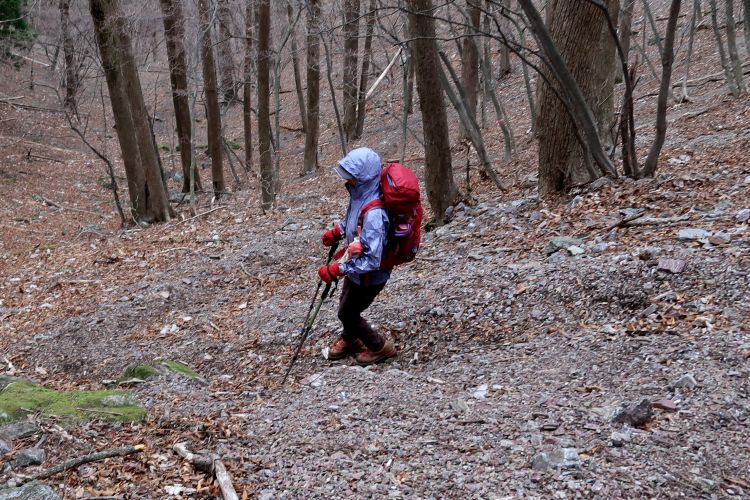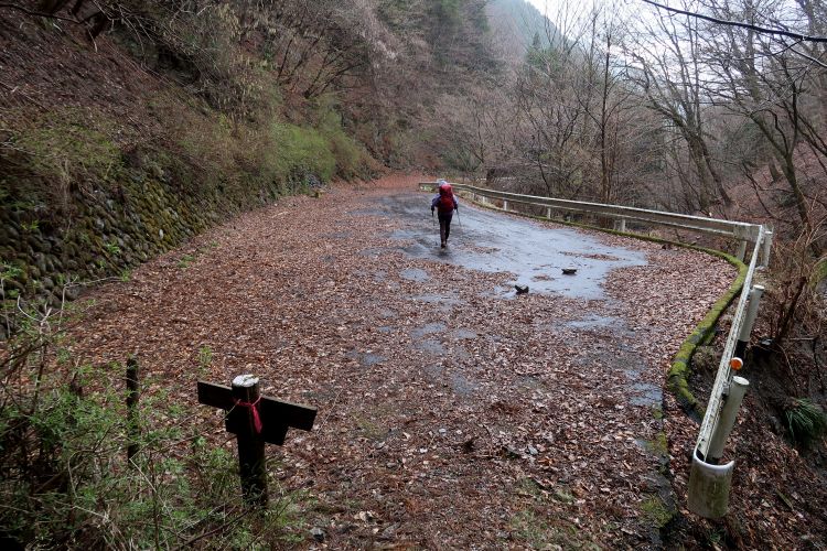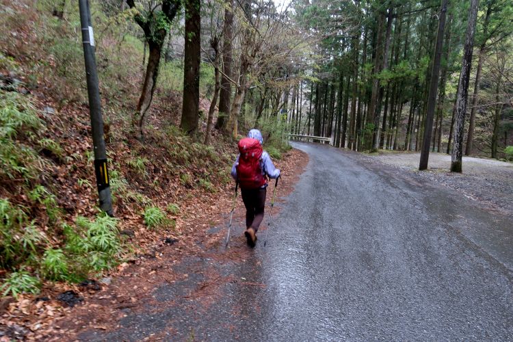 足もとが滑りやすいので注意して進む。晴れの予報だったので雨はないだろうと思っていたが、予想を完全に裏切られた。