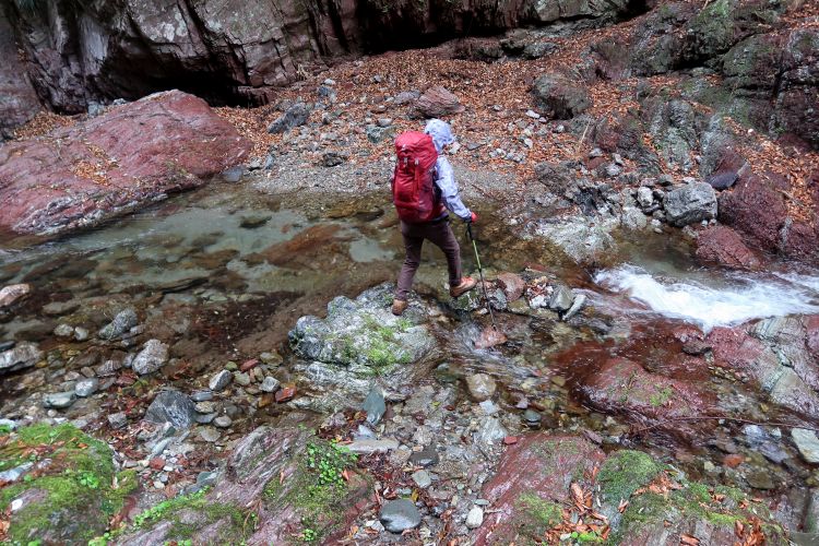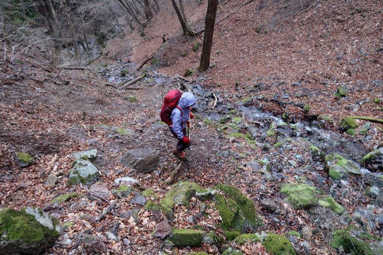 横倉入の源流沿いまで下りてきた。