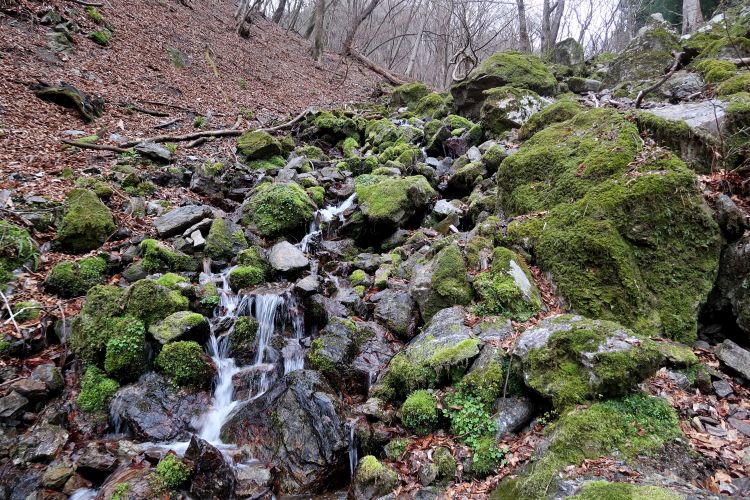 4時起床、4時35分出発。名郷には6時5分到着。新型コロナウィルスで不要不急の外出は控えるべきだが、人に会うわけではない山登りは許容範囲と考えてウノタワへ。歩き始めは天気予報どおりの快晴で、苔観察をしながらのんびり歩いていたが、徐々に天気が崩れ始めて鳥首峠に着く頃には雨雲が広がっていた。当初は大持山、武川岳と縦走して下山の予定だったが、雨が来そうなのでウノタワから山中へ下山することにした。案の定、下山途中に小さな霰(あられ)が降り始め、やがて本降りとなって最後はずぶ濡れとなった。横倉林道は歩行可能だが、崩落している箇所がいくつもあり、復旧するまでは通行を控えた方がよいと感じた。