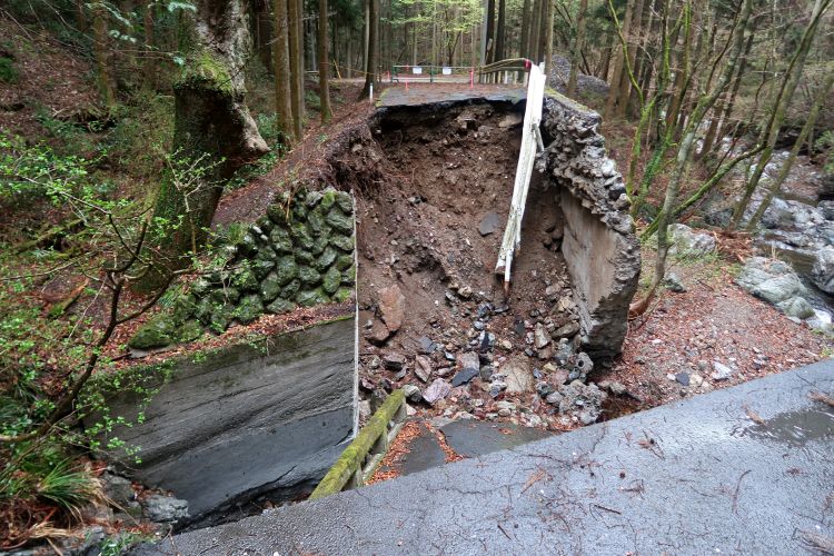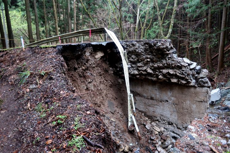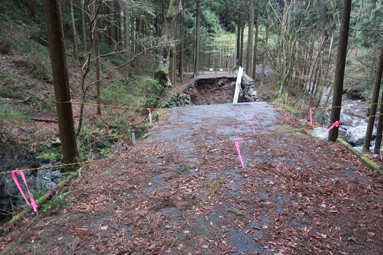 次に出てきた崩落地は道路の半分が陥没していた。