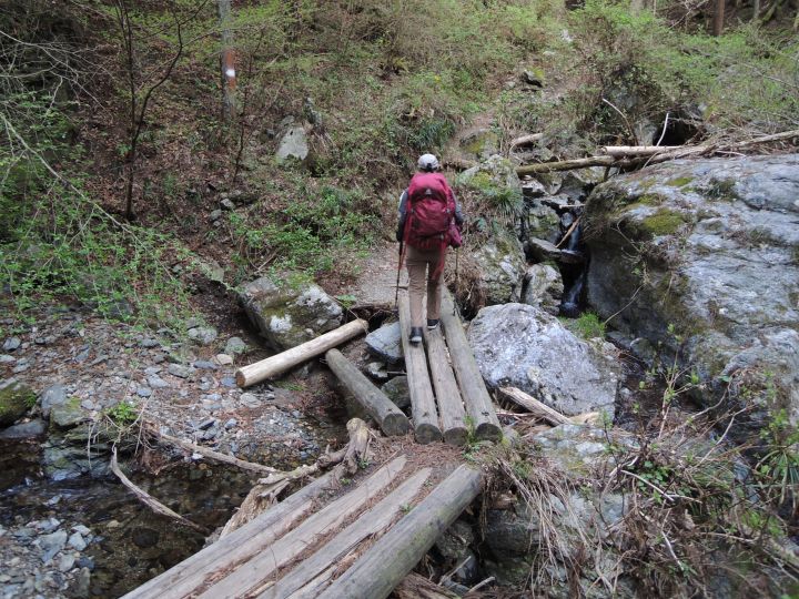 林道の終点まできて、丸太橋を渡ると急登が始まる。