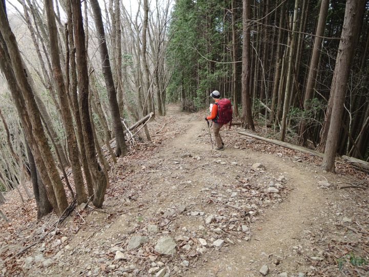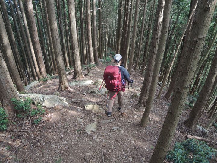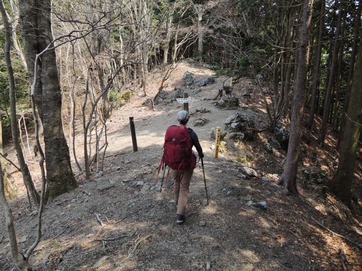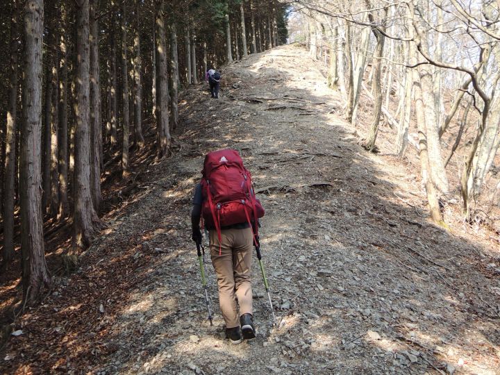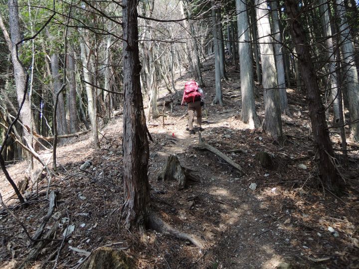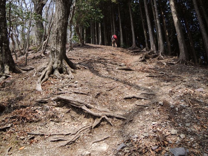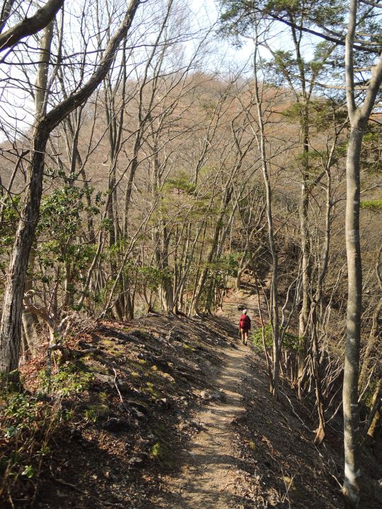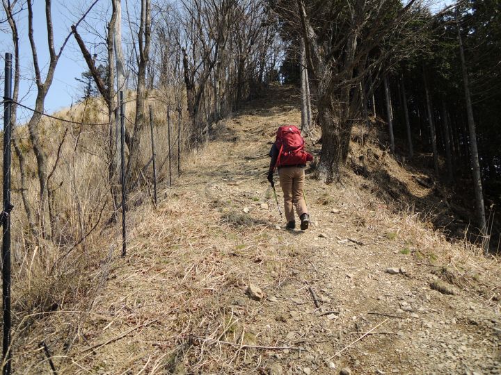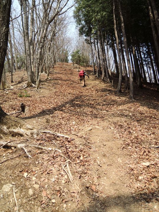 妻坂峠を出発してしばらく急登を上ると、嫁の足が攣り始めた。どうなることかと思ったが、ゆっくり上れば大丈夫らしく、嫁は着実に上ってきた。