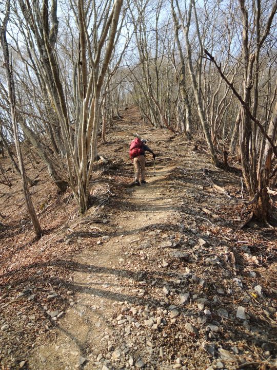 15分ほど休んで先へ進んだ。蕨山の最高点(1,044m)を通過して、なだらかに下る。
