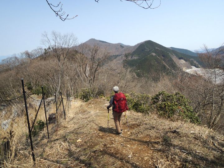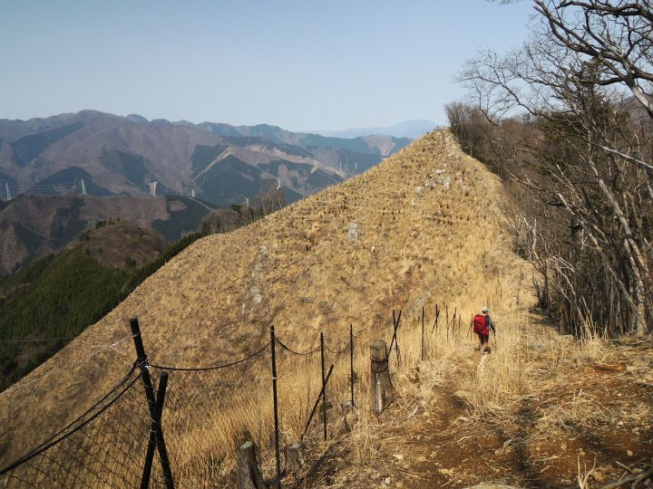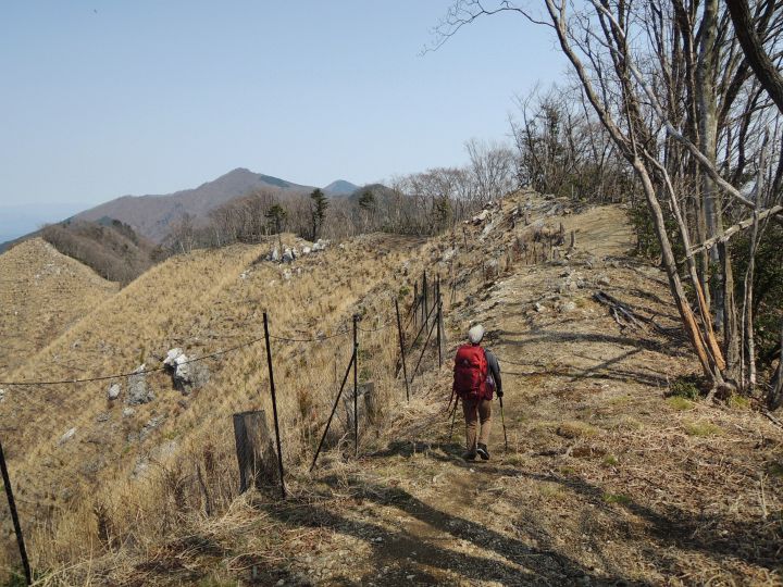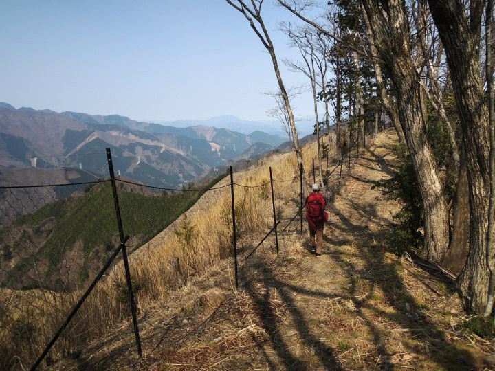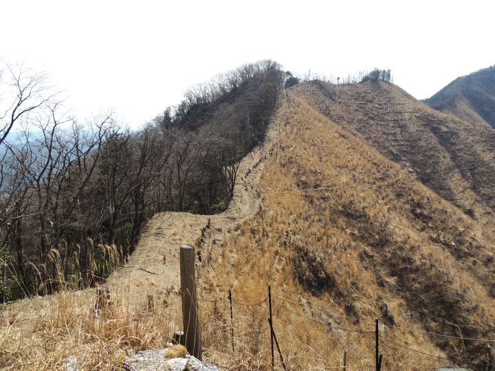 いったん下って上り返すと、シカよけ用と思われるフェンスが尾根沿いに設置されていた。