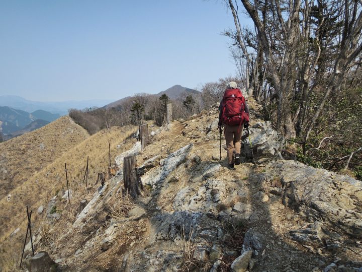 気持ちのよい稜線歩きが続く。岩場であんぱんを食べて先へ進んだ。