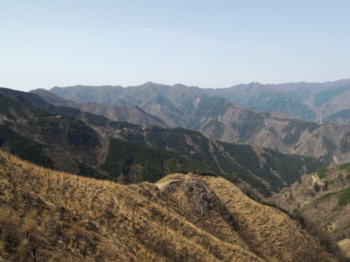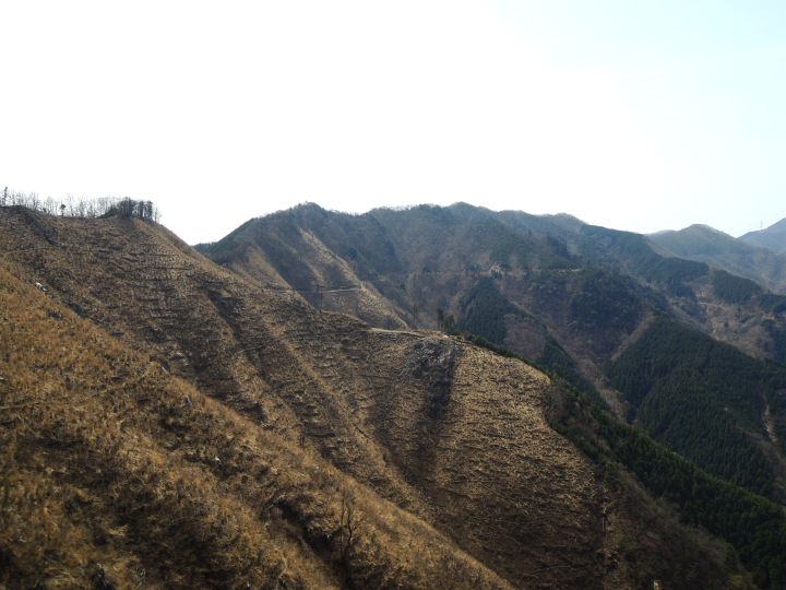 西側の眺め。左に三ツドッケ(天目山)、真ん中に大平山、右奥には両神山。
