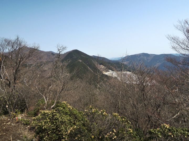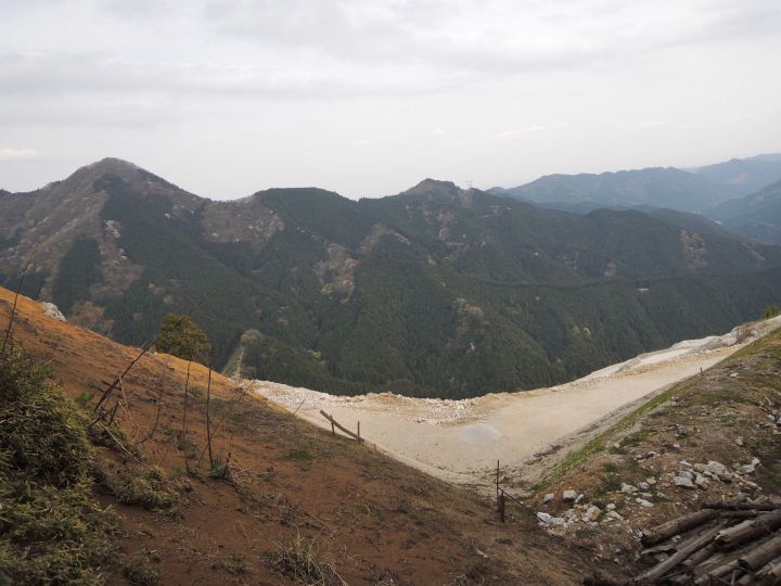 東側に石灰石採掘場が見えた。その上に伊豆ヶ岳と古御岳。