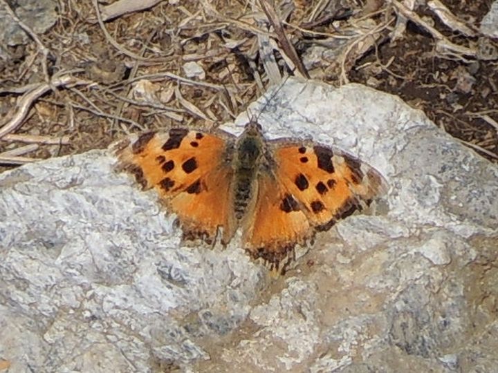 ヒオドシチョウが岩の上で日向ぼっこをしていた。