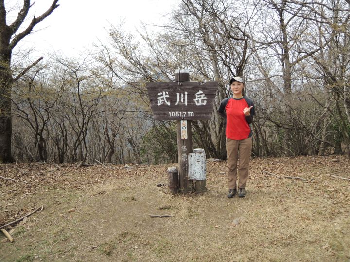 13:30 ついに武川岳(1,052m)まで来た。当初は無理かもしれないと思っていたが、嫁の頑張りに感心した。