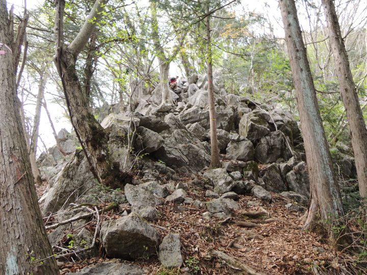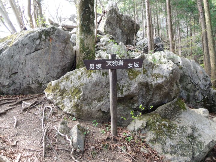 天狗岩の左側に登山道が繋がっていたが、以前は岩場を進んだ記憶があったので、そのまま岩場を下った。