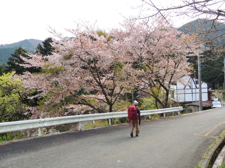 いったん山道に入り、再び林道に出た。林道脇の桜は満開だった。