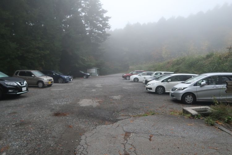 落石防止工事のために林道終点の駐車場まで入れず、途中にある古城公園の駐車場には工事車両が何台か入っていた。登山者は歓迎されていない感じだったので、素直にスキー場の駐車場を利用することにした。