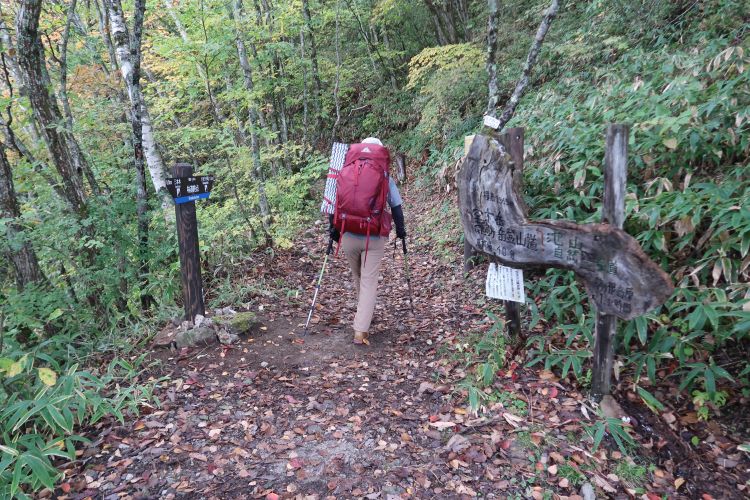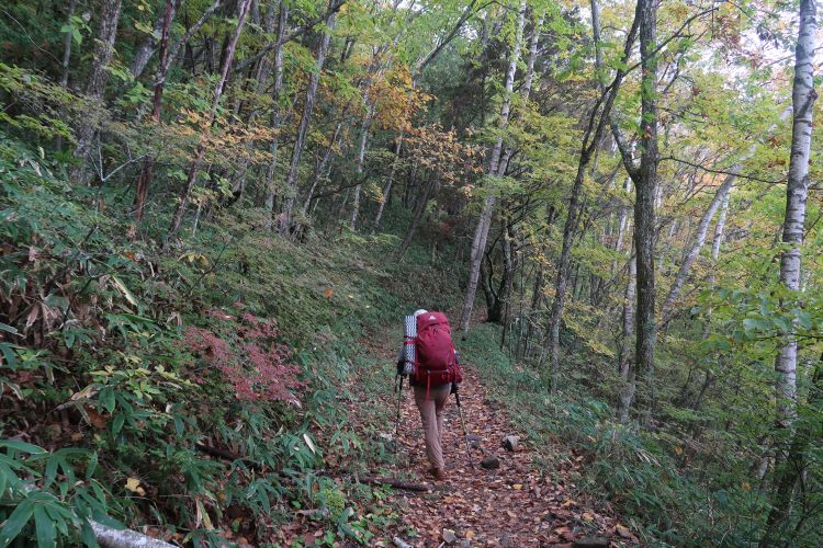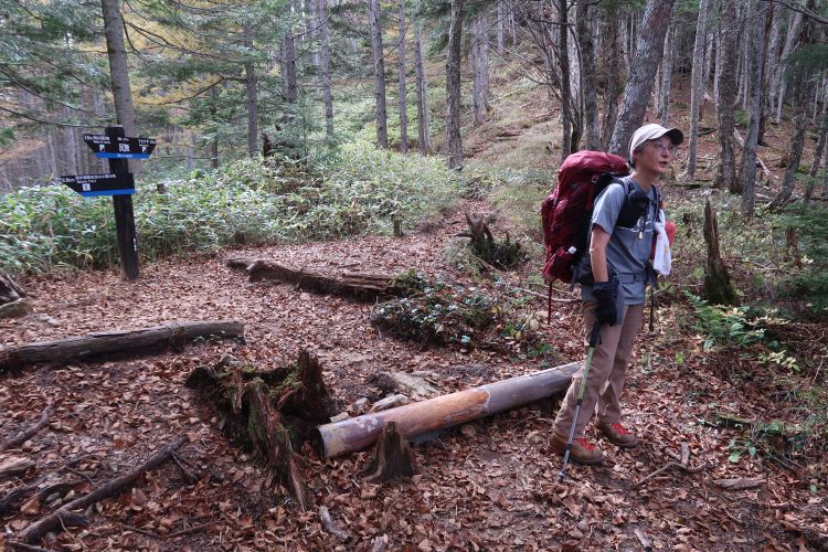 周囲は紅葉しており、登山道は落ち葉に覆われていた。