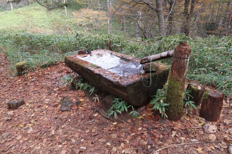 10:10 池山小屋分岐(1,750m)に到着。水場とベンチがあったので10分ほど休憩にした。タカウチ場で妻を待つ間に通り過ぎたラジオを大音量で鳴らす老夫婦を再び見かけたが、彼らは上へは行かないようだった。