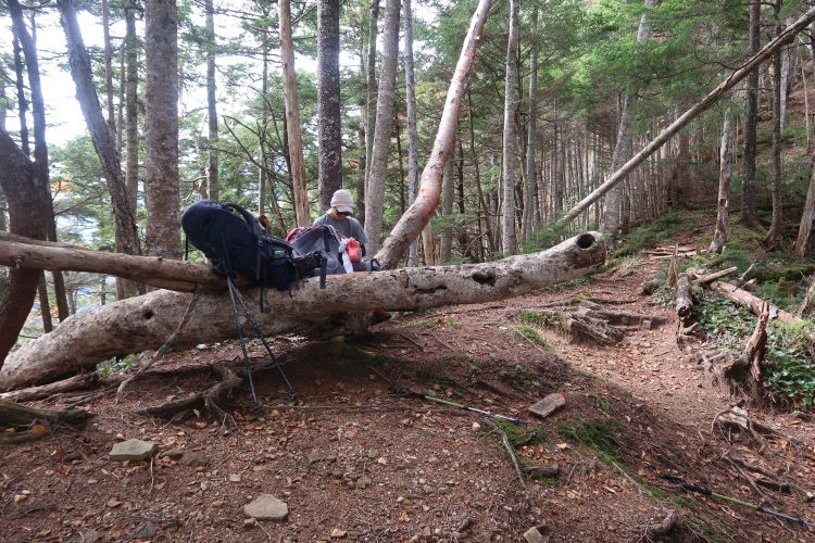 11:25 ちょうど腰を下ろせる倒木があったので小休止。