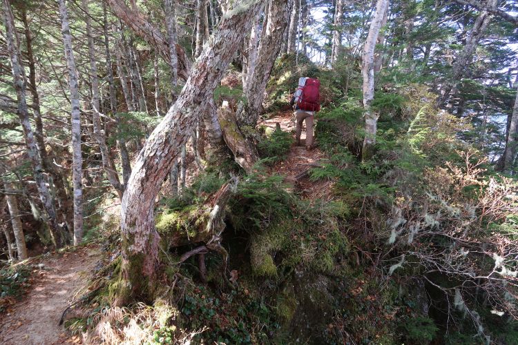 マセナギからしばらく進むと、「大地獄・小地獄」と呼ばれるヤセ尾根の難所となる。