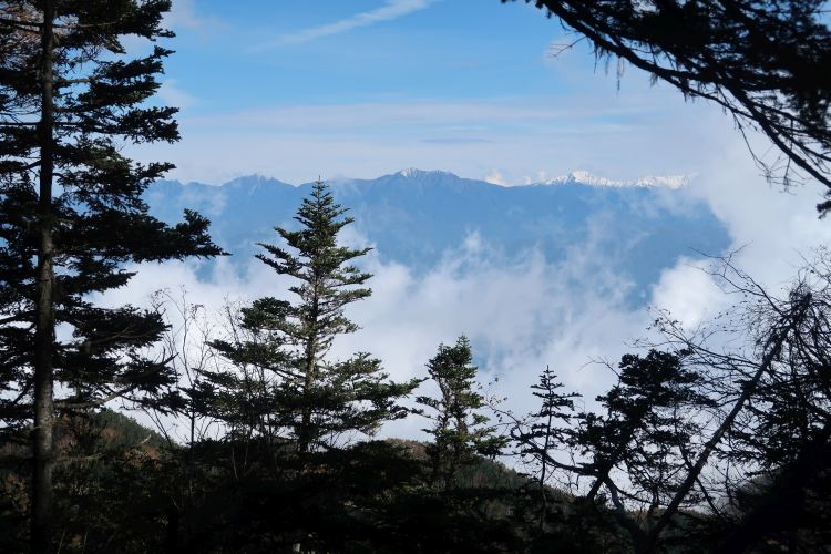 ずっと眺めのない樹林帯を進んでいたが、やっと樹間に木曽駒ケ岳が見えた。