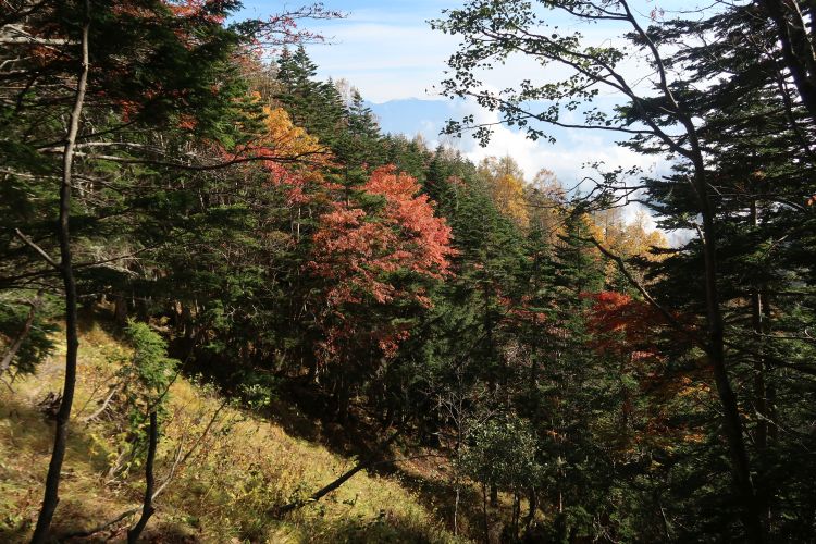 池山小屋分岐までは綺麗な紅葉が見られた。防寒対策をしっかりしてきたが、風がないこともあって、寒さはそれほどでもなかった。