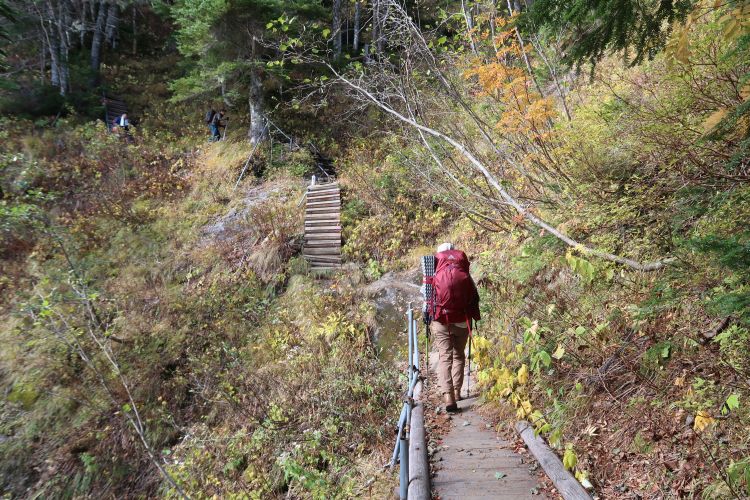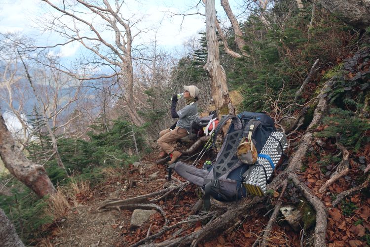 すれ違った登山者の中には、荷物があまり大きくない日帰りと思われる登山者もいたが、このコースを日帰りするのはかなりの健脚でなければ無理だと感じた。