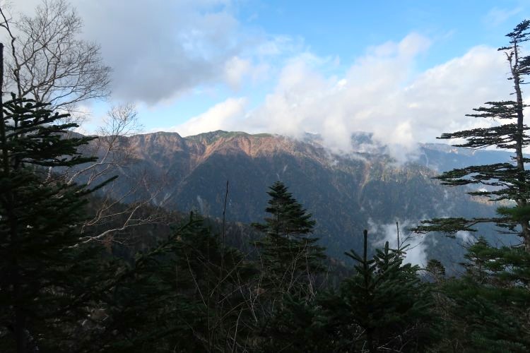 樹間に見えた木曽駒ケ岳は雲に隠れていた。