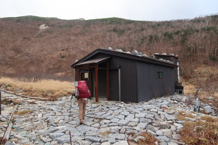 無人の避難小屋は20名ほど収容できる。この日は我が家の他に年配の男性が1人だけだった。さっそく寝袋等を整えて、16時過ぎには早めの夕食にした。トイレは小屋の裏にあり、思いのほか綺麗だった。