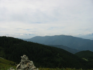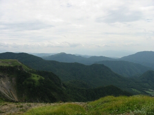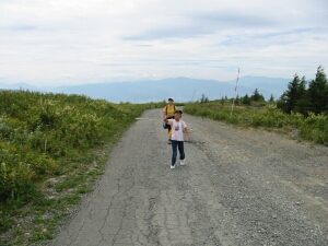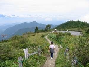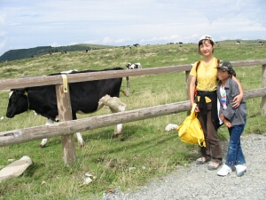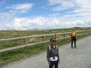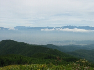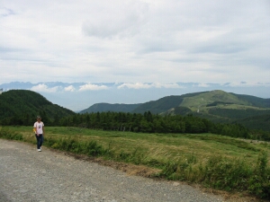 夏休み旅行2日目は、標高2,000m前後の台地が広がる美ヶ原高原へ。松本の宿泊先を8時過ぎに出たのだが、美鈴湖までの林道が狭くて大変だった。標識もないし、あまりに寂しい道なので思わず間違いかと 思ったが、無事美ヶ原スカイラインに乗れた。林道をどんどん登っていくのだが、途中からすばらしい景色の連続となり、何度か車を停めて写真を撮った。